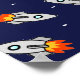 Crazy space rockets on navy blue background.