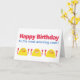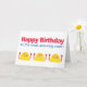 Funny cooking birthday card with three funny yellow creatures holding forks and spoons and the text "Happy birthday to the most amazing cook!". This funny card is suitable for mother, father, spouse, friends and everyone who loves to cook.
