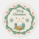 Cream and Green Merry Christmas Circle Classic Round Sticker