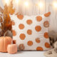 A fun, modern, and slightly grunge inspired design featuring deep orange stamped dots with varying fading and delicate dark rim effects against a cream background.