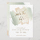 Elegant Wedding Save the Date card with beautiful sage green brush strokes in a harmonious blend of cream beige, peach, and sage green hues with "Save the Date" phrase in graceful modern hand written calligraphy. Attractive back with brush strokes wash. Modern, elegant minimalist style. Note: typography is not in real foil, but rather print in a golden hue. Part of our "Sage Green Brush Strokes Wedding" collection.