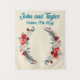 custom wedding backdrop for reception, cream ivory, dark teal blue, and red calligraphy back drop, personalised winter photo booth tapestry, summer banner prop for ceremony, fall autumn photobooth rustic decor, couple engagement party bridal shower, farmhouse barn country rustic modern, simple chic boho watercolor script, bohemian welcome sign floral elegant, bride groom classic dusty blue feathers botanical foliage