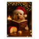 Humorous Christmas card featuring a cream Cockerpoo dog reading 'The Cheese Tax at Home Regulations 2025' whilst trying to resist the urge to eat the cheese that someone's left on the table right in front of its nose!