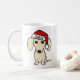 Dachshund Lover's Holiday Coffee Mug. Cute English cream coloured wiener dog with Santa hat. Add a custom name to this mug for a one of a kind gift!