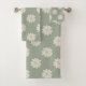 Cream Daisy Pattern Sage Green Bath Towel Set