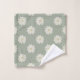 A daisy flower pattern on a sage green background. Check out the matching shower curtain in the collection.