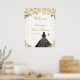 This elegant and glamourous sweet sixteen welcome sign features a beautiful princess with dark hair and dark skin in a cream ball gown. The text combines handwritten script and modern sans serif fonts for a classy and sophisticated look. The floral arrangements, butterflies and gold confetti create the perfect blend of rustic and chic.