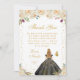 This elegant and glamourous sweet sixteen thank you card features a beautiful princess with blonde hair and fair skin in a black ball gown. The text combines handwritten script and modern sans serif fonts for a classy and sophisticated look. The floral arrangements, butterflies and gold confetti create the perfect blend of rustic and chic.