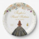 Cream Floral Brown Hair Princess Sweet Sixteen Paper Plate