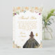 This elegant and glamorous birthday thank you card features a beautiful princess with brunette hair and fair skin in a black ball gown. The text combines handwritten script and modern sans serif fonts for a classy and sophisticated look. The floral arrangements, butterflies and gold confetti create the perfect blend of rustic and chic.