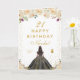 This elegant and glamorous birthday card can be personalized with a name or title such as daughter, granddaughter, niece, friend etc. The design features a beautiful princess with dark hair and dark skin in a black ball gown. The text combines handwritten script and modern sans serif fonts for a classy and sophisticated look. The floral arrangements, butterflies and gold confetti create the perfect blend of rustic and chic.