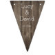 Rustic bunting to decorate your event. Lovely rustic barn wood with a pretty pale autumn floral arrangement in mason jars.