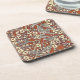 cream flowers brown background print coaster
