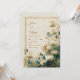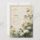 Capture the essence of refined organic luxury with this multi-dimensional botanical design. A soft, textured cream background provides a bright and airy base for large, off-white Astrantia blooms (Masterwort) that feature delicate gold-tipped stamen. The right side of the composition is grounded by a moody, artistic wash of deep teal and emerald green watercolor, which is beautifully detailed with a dusting of shimmering gold glitter and fine metallic specks. A thin, double gold border frames the scene, creating a sophisticated contrast between the light ivory petals and the nocturnal jewel-toned corner. This wedding invitation is a perfect match for an upscale estate wedding, a romantic spring garden ceremony, or a sophisticated evening reception. It is especially suited for couples using a colour palette of ivory, gold, and peacock teal, looking to blend a classic vintage aesthetic with modern artistic watercolor elements.