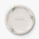 Cream Modern Wedding Paper Plate. Simple and elegant. Gold enchanced foliage. Personalised. Gold text. Reception. 7 " plate.