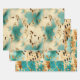 Cream Gold Turquoise Cowhide Animal Wrapping Paper Sheet