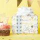 Congratulations Shower paper gift wrap with hearts and mini flowers and an umbrella, personalise the congratulations text to name to suit her baby or wedding shower day. The light baby blue stripe behind the hearts can be changed to any colour. Text is also removable.