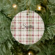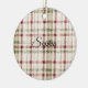 Cream Green Red Plaid Stripes Ceramic Ornament