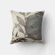 Stylish throw pillow features an artistic abstract design in a cream colour palette with shades of grey. A modern artistic abstract design features a watercolor leaf and a geometric circle composition with shades of grey with black and gold accents on a creamy ivory background. This abstract composition is built on combinations of repeated circles and leaves, which are overlapped and interlaced to form an intricate and complex abstract pattern. The grey accents are layered and and interspersed to give perspective and depth; design elements that compliment the lighter ivory background. Inspired by Japanese design.
