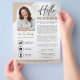 Introduce yourself and advertise your professional real estate services with this cream modern, Hello Neighbour Real Estate Agent Photo Introduction flyer template featuring a soft grey gradient textured background, icons, photo of home, and "Hello" modern calligraphy. Personalise template to your liking.