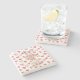 The coasters are gorgeous, a quality feel and heavy weight. They look like a precious archeological find. A rustic stone juxtaposed with a modern floral black and white print. I like the way the print goes slightly imperfect on the cut stone edges giving them a kind-of natural beauty.