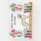 Destei's original cartoon illustration of a cute English cream Labrador Retriever breed dog. The dog is placed in a colourful birthday setting with pastel colour birthday balloons and presents. The pastel colours include pink, green, blue, red, orange and purple. The dog is standing on a yellow wood floor texture and the background has a playful pastel colour polka dot pattern. There is also a personalizable text area.