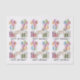 Destei's original cartoon illustration of a cute English cream Labrador Retriever breed dog. The dog is placed in a colourful birthday setting with pastel colour birthday balloons and gifts. The pastel colours include pink, green, blue, red, orange and purple. The background has a playful pastel colour polka dot pattern. There is also a personalizable text area that now reads: "Happy Birthday!". The design is placed six times creating a small pattern.