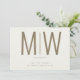 Large monogram cream wedding save the date. Contemporary, modern. Sleek. Gold text.