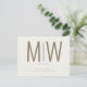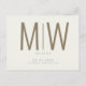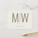 Large monogram cream wedding save the date. Contemporary, modern. Sleek. Gold text. Postcard.