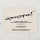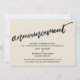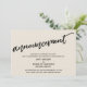 This suite's distinction is due to the modern, handwritten script font used for accent phrases. In the event that you need to let your guests know that your wedding has been cancelled, this card provides a bold, eye-catching option. In this piece, the hand-lettered script font was used to create a graphic simple depicting the word "announcement". Use the template fields to add your personal details and make this unique, modern design your own. The background can be changed to any colour you prefer. Please reach out with any special requests or for customising assistance. // 100 //