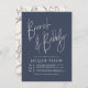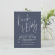 A simple, modern design featuring "Brunch & Bubbly" in script hand-lettering with the bride-to-be's name below in chic open-face capitals. The celebration date appears to the left in a stacked layout with the venue, address, and rsvp information to the right. The cards reverse to an elegant line drawing floral pattern. A minimalist calligraphy design - sure to match any bridal brunch event! The color scheme is a boho combination of cream and navy blue. More color variants are available in our store. Feel free to message me with any design-related questions!