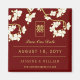 Oriental peach / plum blossoms, spring flowers in cream / ivory / white on a dark burgundy red / matte brass gold background with a simple rectangle double happiness symbol wedding save the date announcement magnet. An elegant and romantic floral chinese / asian / oriental themed wedding design which is whimsical, modern and classy.
