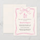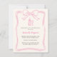 A soft cream, beige background colour. Decorated with a pink hand drawn bow, frame a bottle of Prosecco and a glass, flute. Personalise and add your names and details.