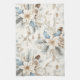 Cream Poinsettia Blue Floral Christmas Tea Towel