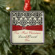 This premium ivory, red, and black damask keepsake ornament would make a cherished memento of your first Christmas together as husband and wife. Look for the entire wedding collection below.