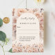 A cream coloured arch and cream, pink, rose gold roses, flowers as background. Personalise and add the reply by date.