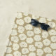 Seamless pattern of fluffy blooming cream roses set on a textured golden beige background. The background and colors are fixed, but the placement and size of the pattern can be changed.