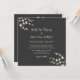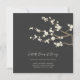 An original illustration of beautiful ivory cream white cherry blossoms or sakura spring flowers with light brown branches on a dark expresso brown background. This is a modern double-sided wedding day invitation / wedding dinner reception card.