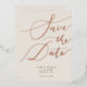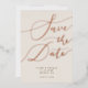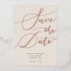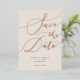 Elegant save the date card featuring hand lettered calligraphy text that says "save the date" in rose gold on a cream background. You can add a photo on the back.