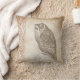 This pale cream and brown pillow has a vintage style to it. Textured, old background with faint white text; a dark red swirl border and vintage owl illustration. The colors are neutral and will suit most decor. Ideal for classic country furnishings.