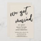 This suite's distinction is due to the modern, handwritten script font used for accent phrases. In this piece, the hand-lettered script font was used to create a graphic depicting the words "we got married". Use the template fields to add your personal details and make this unique, modern design your own. The background can be changed to any colour you prefer. Please reach out with any special requests or for customising assistance. // 100 //