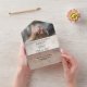 Introducing our elegant and chic wedding invitation in a rustic weathered whitewash style texture background with rust coloured accents and dark chocolate brown, almost black lettering. At the top of the invitation you can customise with a personalised photo that will have a weathered texture transparent overlay so it blends seamlessly with the weathered background of this invitation. This trendy and minimalist design is perfect for couples seeking a vintage and elegant look for their special day. The highlight of this invitation is the convenient QR code, allowing guests to RSVP effortlessly using their smartphones. For traditionalists, we've included a traditional paper RSVP option as well. With the all-in-one design, guests can easily tear away the RSVP section and send it back. Additionally, we've provided email information for RSVPs, ensuring a seamless and convenient RSVP process. Fully customisable, this invitation also offers the option to add a cherished photo, adding a personal touch to your wedding announcement. Create a memorable and stylish impression with our customisable wedding invitation featuring a vintage style, weathered background in a cream and rust colour scheme, complemented by the rich texture of dark brown lettering.