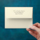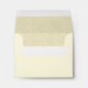 Elegant custom wedding Thank You card envelope done in cream, with graphics of a cream and khaki swirl pattern, on the inside. Dark grey return address text, on the back flap, is ready to personalise with your own information. Lovely finishing touch to our Cream fabric looking wedding thank you note cards.