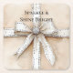 Cream White Silver Glitzy Glam Bow Birthday Square Paper Coaster