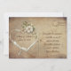 cream white rose bouquet with heart shaped ribbon on a vintage postcard design with postmark