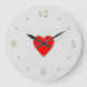A Simplistic cream clock with a red heart centre.Numerals in light tan complete this simple clock design. Perfect for Valentines day or any special occasion.