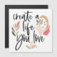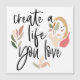 Positive vibes to send someone special with this modern design with an abstract face of a female and arty leaves in a mix of pastel colours and elegant black script Create A Life You Love on a white background.