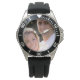 Create your own custom, personalised, gents mens sporty rugged crown protector black rubber strap, alloy case, wrist watch. Simply add your photo and text, to customise. While you add / design, you'll be able to see a preview of your creation, throughout. The watch features text in elegant faux gold typography script. Makes a great gift, for birthday, graduation, fathers day, christmas, holidays, wedding, marriage anniversary, valentines day, and more, for your loved ones, brother, son, dad, husband, boyfriend, grandpa, family and friends.