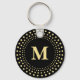 Create your own custom, modern elegant faux gold script / typography monogram monogrammed on black background, beautiful circles pattern design, unique, cool, simple, minimalist, personalised round keychain / keyring. Simply type in your monogram / initials, to customise. Makes a great gift for for birthday, graduation, fathers day, mothers day, christmas, holidays, first home / housewarming gift, corporate gifts, and more, for your loved ones, girlfriend, boyfriend, mum, dad, husband, wife, couples, newlyweds, corporate clients, friends and family.