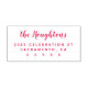 Easily personalise these custom Create Family Name Script Return Address self-inking rubber stamps with your own names and address. To customise these rubber stamps, click on "Personalise this template" and change the text in the boxes provided. Available in 9 different colours and 6 sizes. Please view your design on the monitor as close to actual size as possible to ensure that the text prints at the expected size. For use as a return address stamp most people will require a larger size than this. These return address self-inking rubber stamps stamp up to 10000 impressions with each cartridge, have a soft touch for secure grip and ink-free fingers and an eco-friendly manufacturing process. No minimum order quantity.